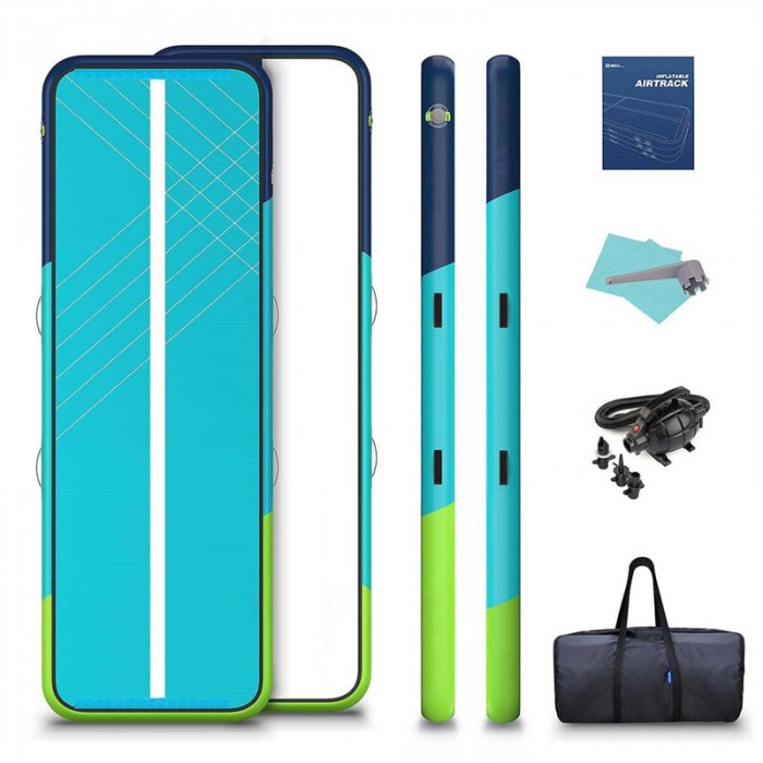 An air track mat is ideal for people with limited storage space to practice gymnastics.