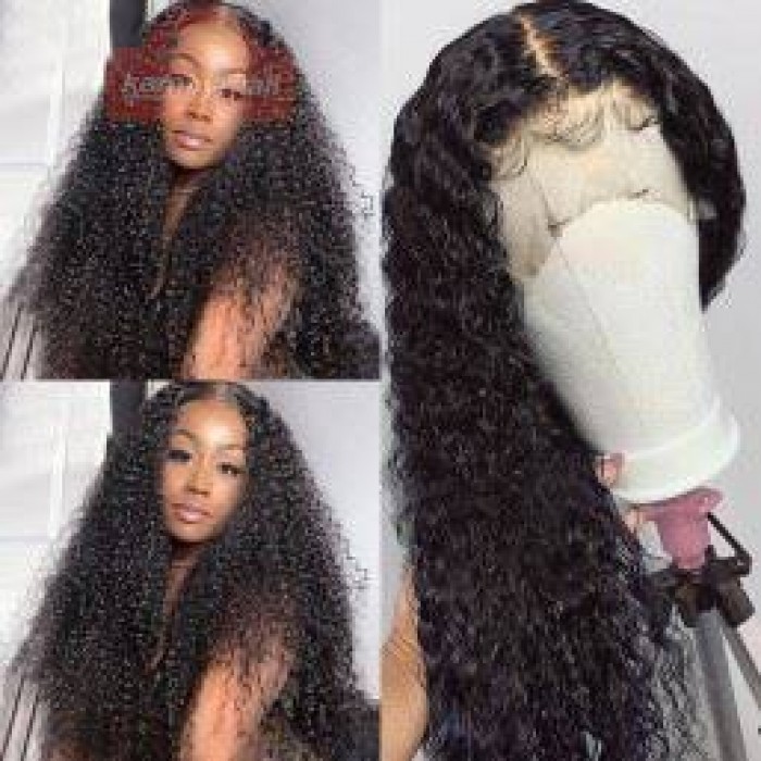Curly Long Human Hair Lace Front Wigs Black On Sale