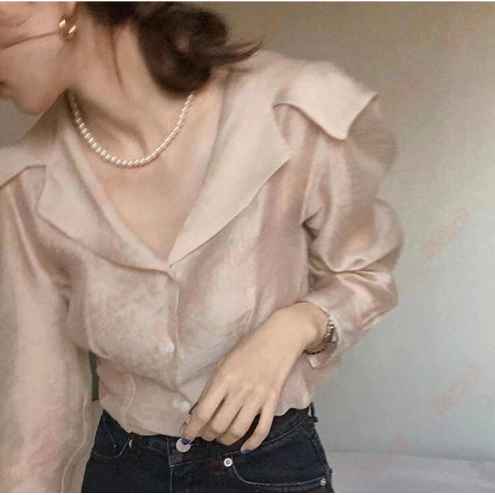 Long sleeve leisure nude pink shirts, this shirt is made of polyester fiber so it is comfortable to wear, and its collar is navy collar. The size is average, great gifts for young girls.