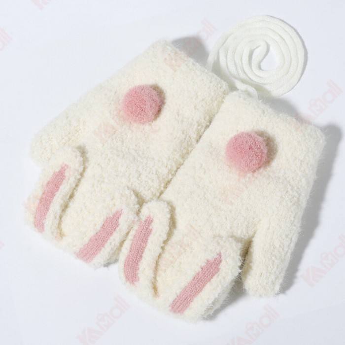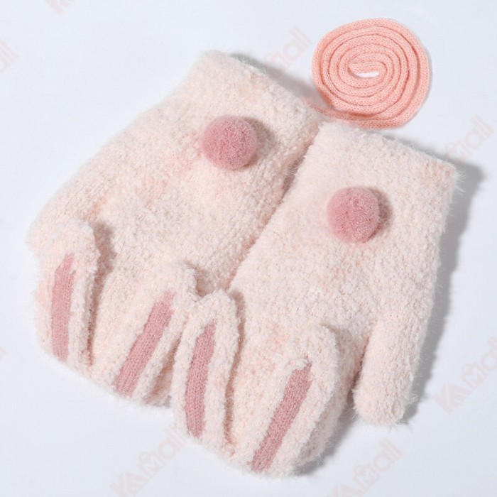 Brand Name: KameymallMaterial: fleeceCategory of use: clothing glovesApplicable gender: femaleProcessing method: KnittingFunction: keep warmpattern: plainModel Number:DRST26Style: mittensColor: bunny light pink, bunny gray, bunny beige, bunny Korean powderSize: Recommended age 2~6 years oldSuitable season: winter, autumnApplicable age: Recommended age 2~6 years oldstyle: cute