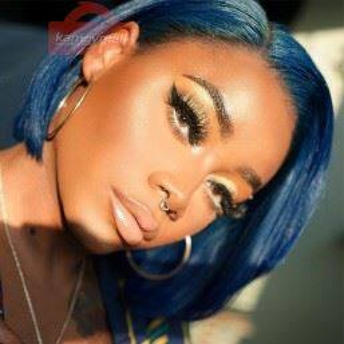 Bob Wigs Short Cheap Wigs Midnight Blue Human Hair Short Lace Front Kameymall
