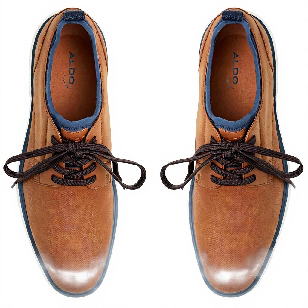 Available in UK sizes ranging from 6 to 12, including half sizes, with two sophisticated color options: rich Cognac and deep Navy. The shoes feature the ALDO Pillow Walk technology, which provides immediate comfort without requiring a break-in period. The synthetic leather construction ensures durability while maintaining a premium appearance.