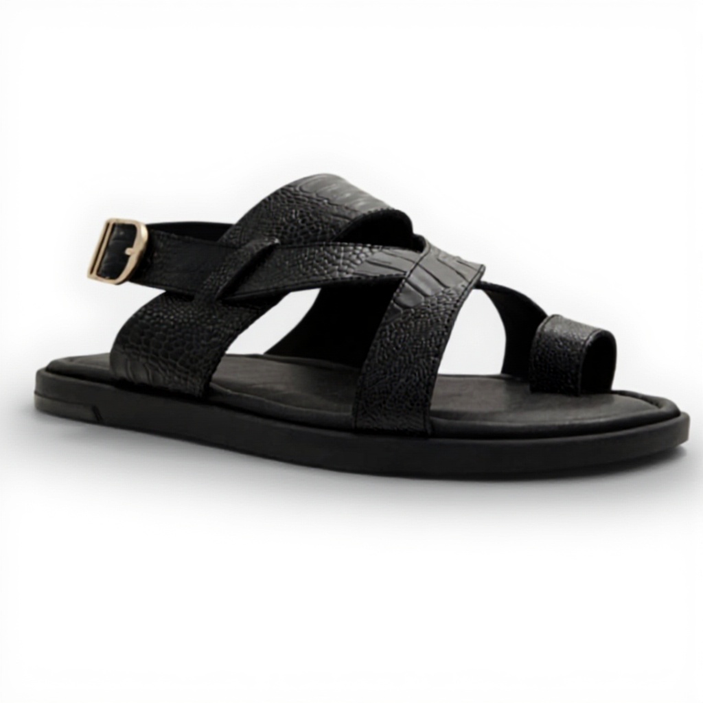 Available in size 12 UK with a black color option, these sandals are designed with men’s sizing standards for accurate fit. The flat sole construction provides stable support without compromising on comfort, making them suitable for extended wear. The leather material offers durability while maintaining flexibility for natural foot movement.