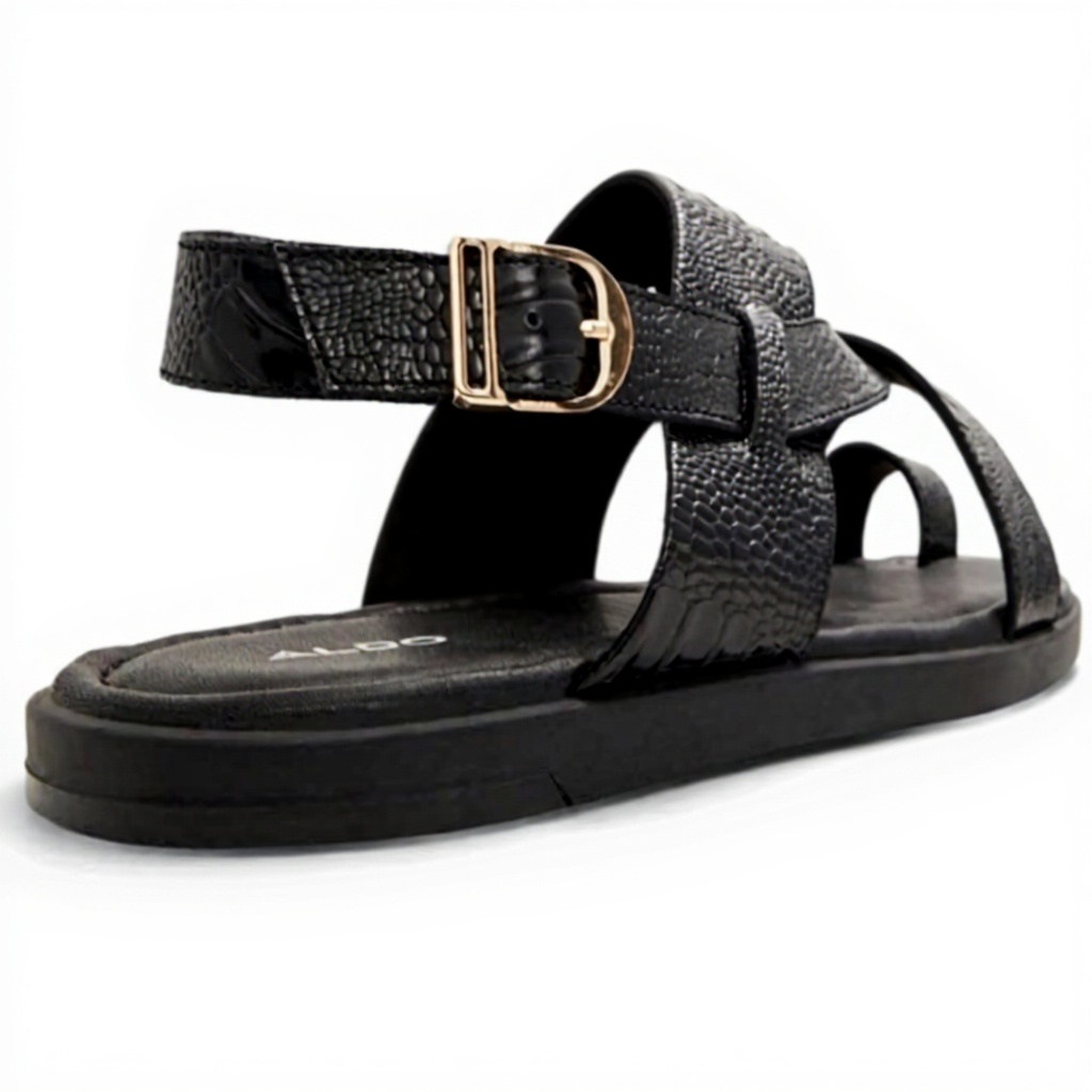 The Aldo ZainoFlat Sandal combines timeless design with modern comfort features. Crafted from genuine leather, these sandals feature a sophisticated rounded toe shape that provides both style and ample room for natural foot movement. The buckle closure system ensures secure fit while adding a touch of classic elegance to the overall design.