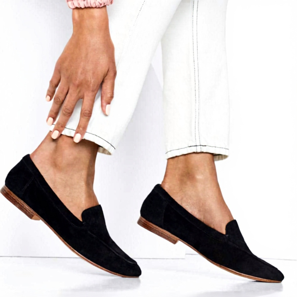 Crafted from luxuriously soft black suede, these almond-toe loafers are designed for year-round comfort and style. They feature a cushioned insole that provides support during long hours of wear, and the slip-on design eliminates the need for laces or zippers, offering effortless convenience.