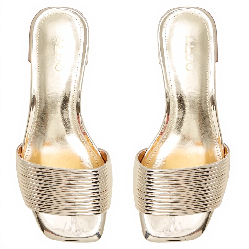 Available in UK sizes 2 to 9.5, including half sizes, and in a versatile gold color. The sandals are designed for a comfortable fit, with a flat sole that provides stability and support. Manufactured by ALDO, they are part of the women’s department and first available in July 2024.