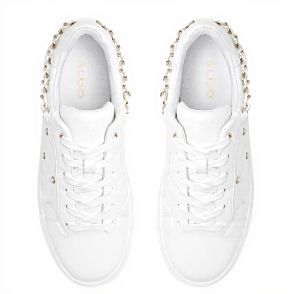 Available in UK sizes ranging from 2 to 9.5, including half sizes for optimal fit precision. The white color option provides versatile styling possibilities that complement numerous wardrobe choices. Manufactured by ALDO with attention to detail, these sneakers feature standard women’s sizing and are designed for consistent performance across all available size options.