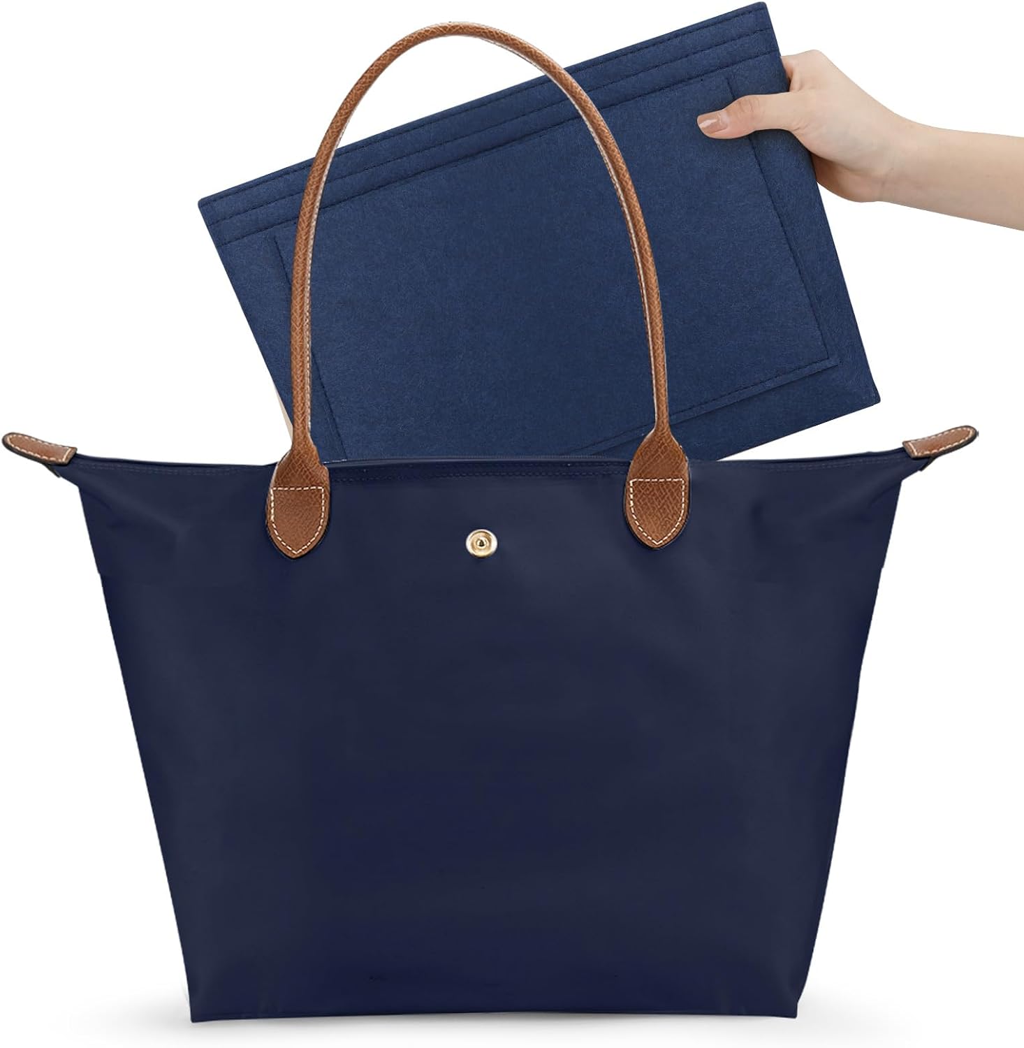 This foldable tote bag for women includes a built-in purse organizer insert, ideal for travel and daily use. Crafted from durable, waterproof nylon, it provides large capacity storage while remaining lightweight and easy to carry. With a 4.6-star rating from 67 reviews and ranking #143 in Travel Tote Bags, it ensures quality and reliability. Available in Black, Navy, and Paper colors, this bag combines functionality with style. Date First Available: May 23, 2025. ASIN: B0FBW6QNHD.