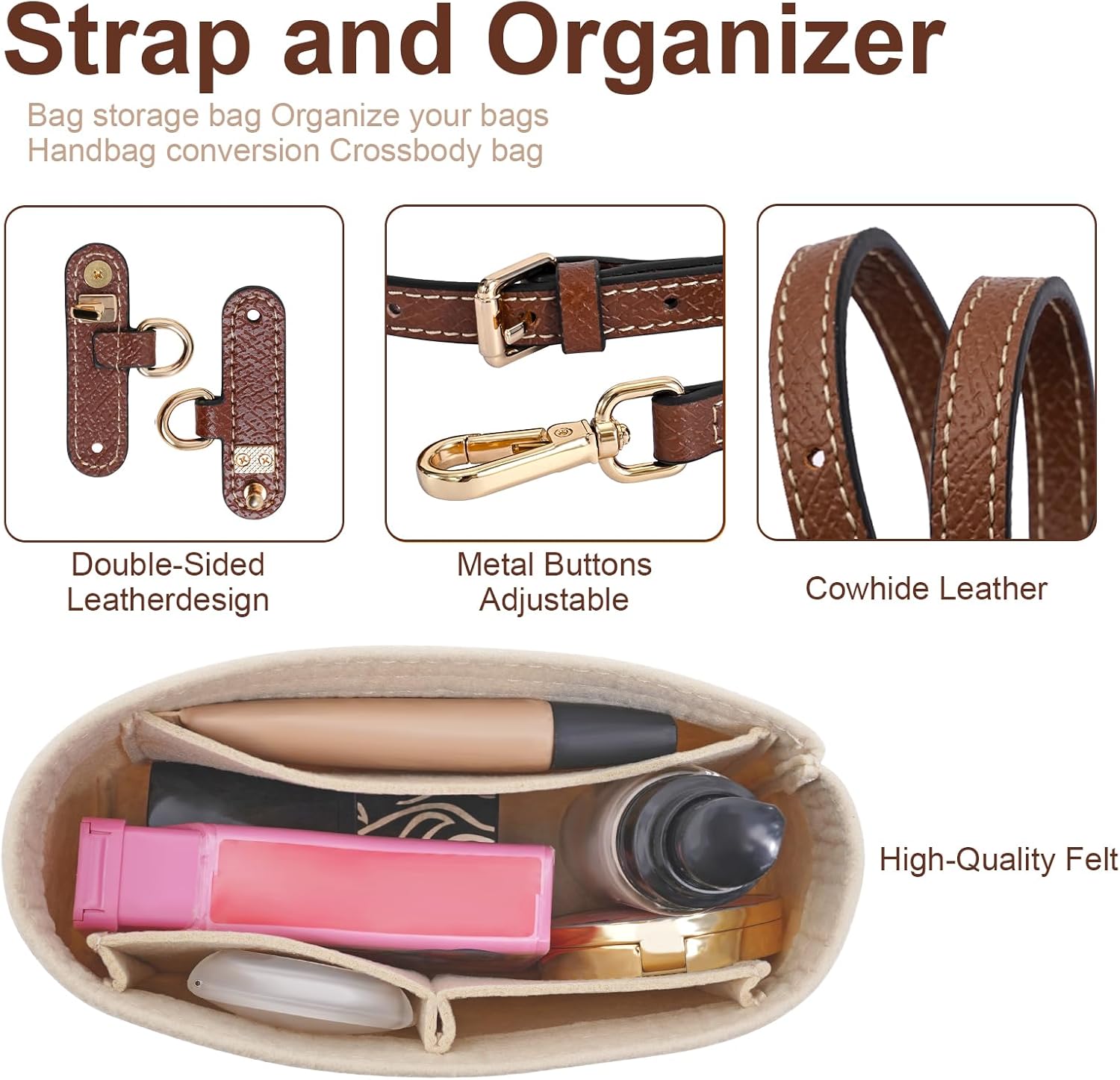 Upgrade your Longchamp mini XS bag with this 2-in-1 organizer kit. It includes a felt purse insert and a leather shoulder strap with an adjustable, punch-free buckle design. Available in multiple colors like Beige Felt, Black, and White Dupont Paper, this organizer helps keep your essentials tidy and adds versatile carrying options without damaging your bag.