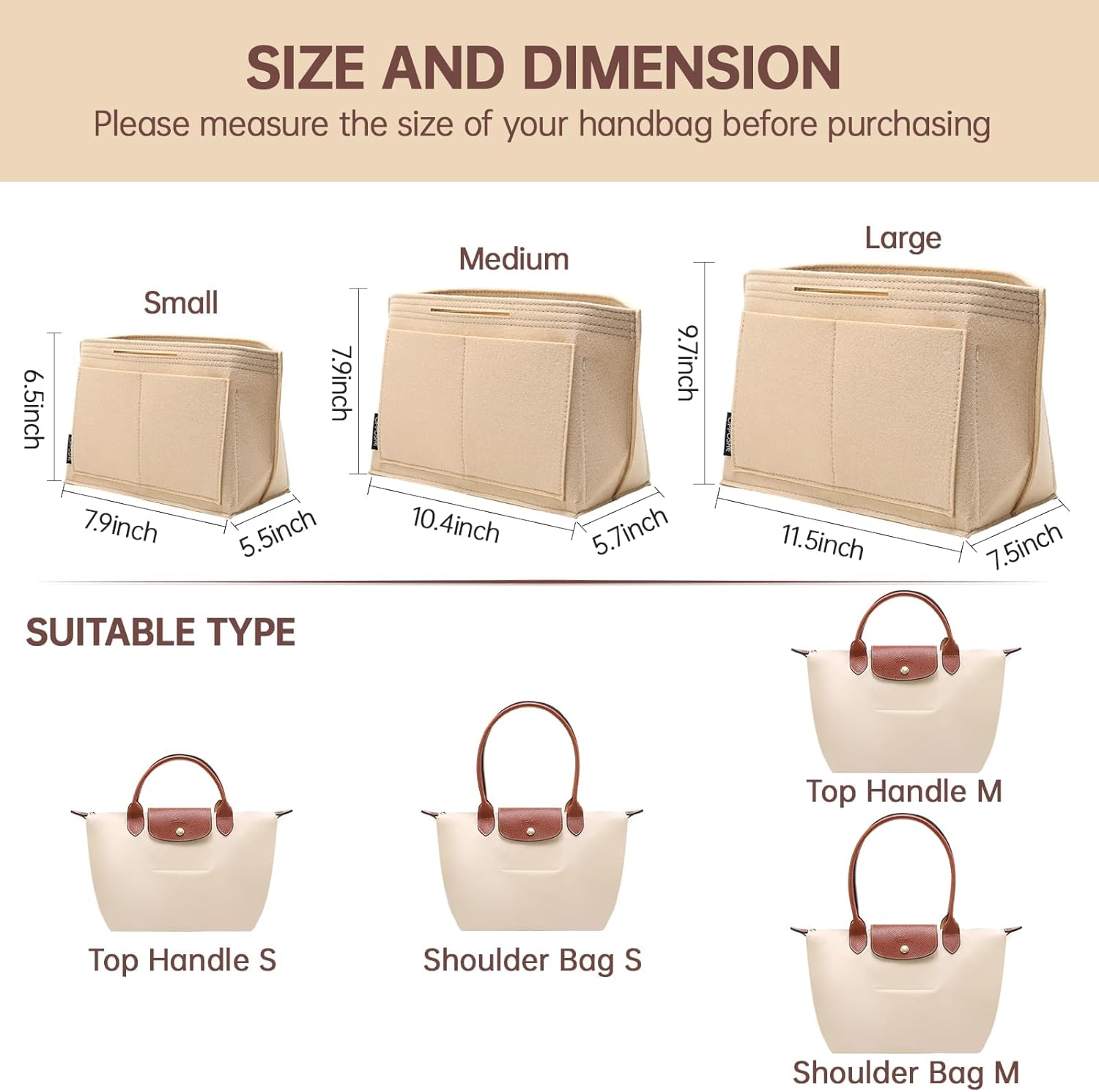 Keep your Longchamp Le Pliage tote perfectly organized with the OPPOSHE purse organizer insert. Made from premium felt, this handbag organizer features 9 compartments to store your essentials neatly. Available in sizes S, M, L and colors Beige, Black, Brown, Grey, Navy, Pink, Red, and Rosy. Maintain your bag’s shape while easily accessing your items. Perfect for women seeking a tidy, functional tote accessory.