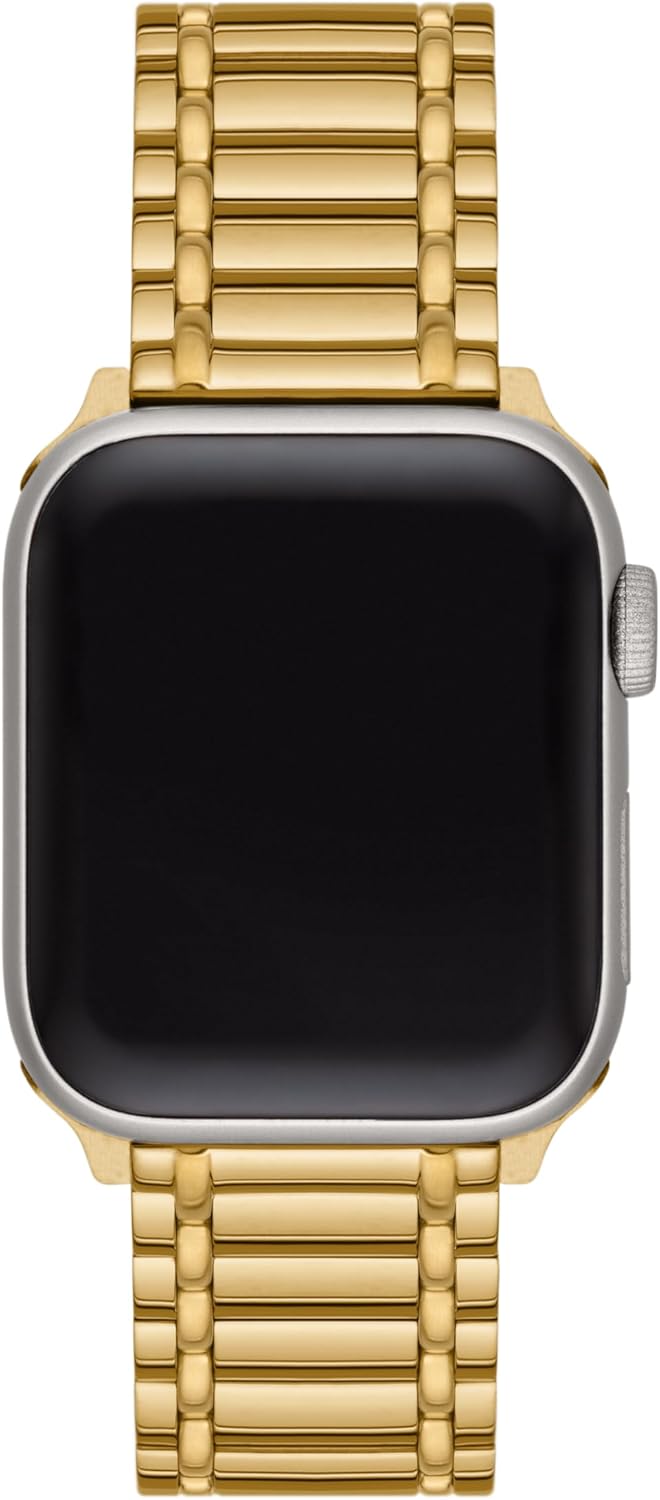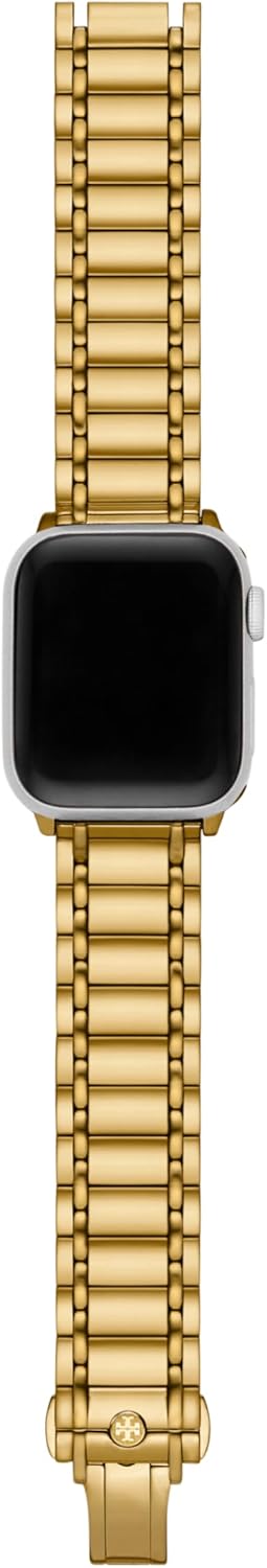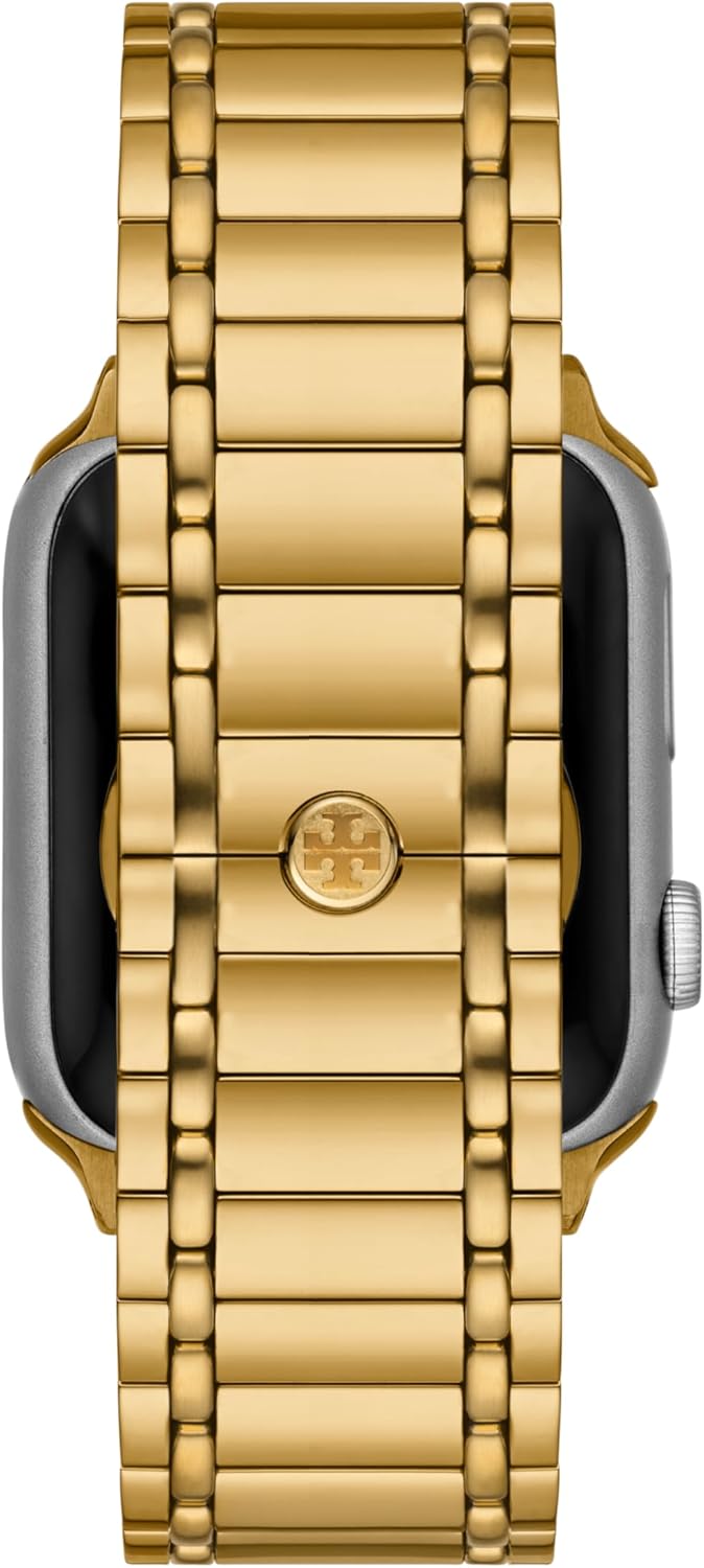 The Tory Burch Women’s Miller Designer Interchangeable Band is compatible with Apple Watch Series 1-9 and SE models. This elegant two-tone gold band offers a stylish accessory for your smartwatch. Key details include: Date First Available: October 10, 2024; Manufacturer: Tory Burch; ASIN: B0DJV1K63Y; Product Warranty: Information available via link; Best Sellers Rank: #347,947 in Clothing, Shoes & Jewelry, #198 in Women’s Watch Bands; Customer Reviews: 4.0 out of 5 stars based on 10 reviews.