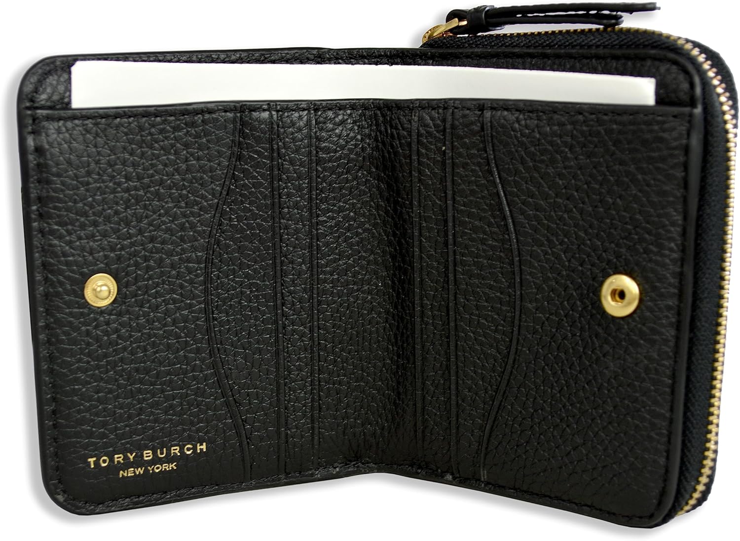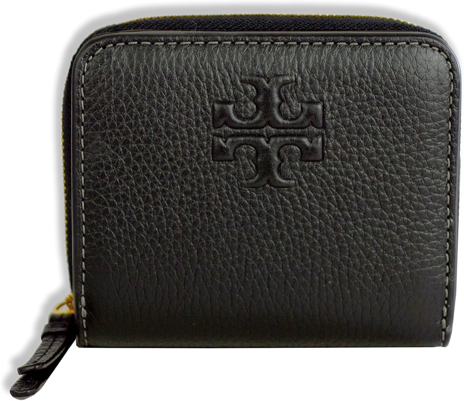 The Tory Burch Thea Bi-Fold Zip Around Wallet combines style and functionality with its pebble leather construction. This women’s wallet features a secure zip-around design, multiple card slots, and a compact bi-fold layout for easy organization. Ideal for everyday use, it offers durability and a sleek black finish that complements any outfit.