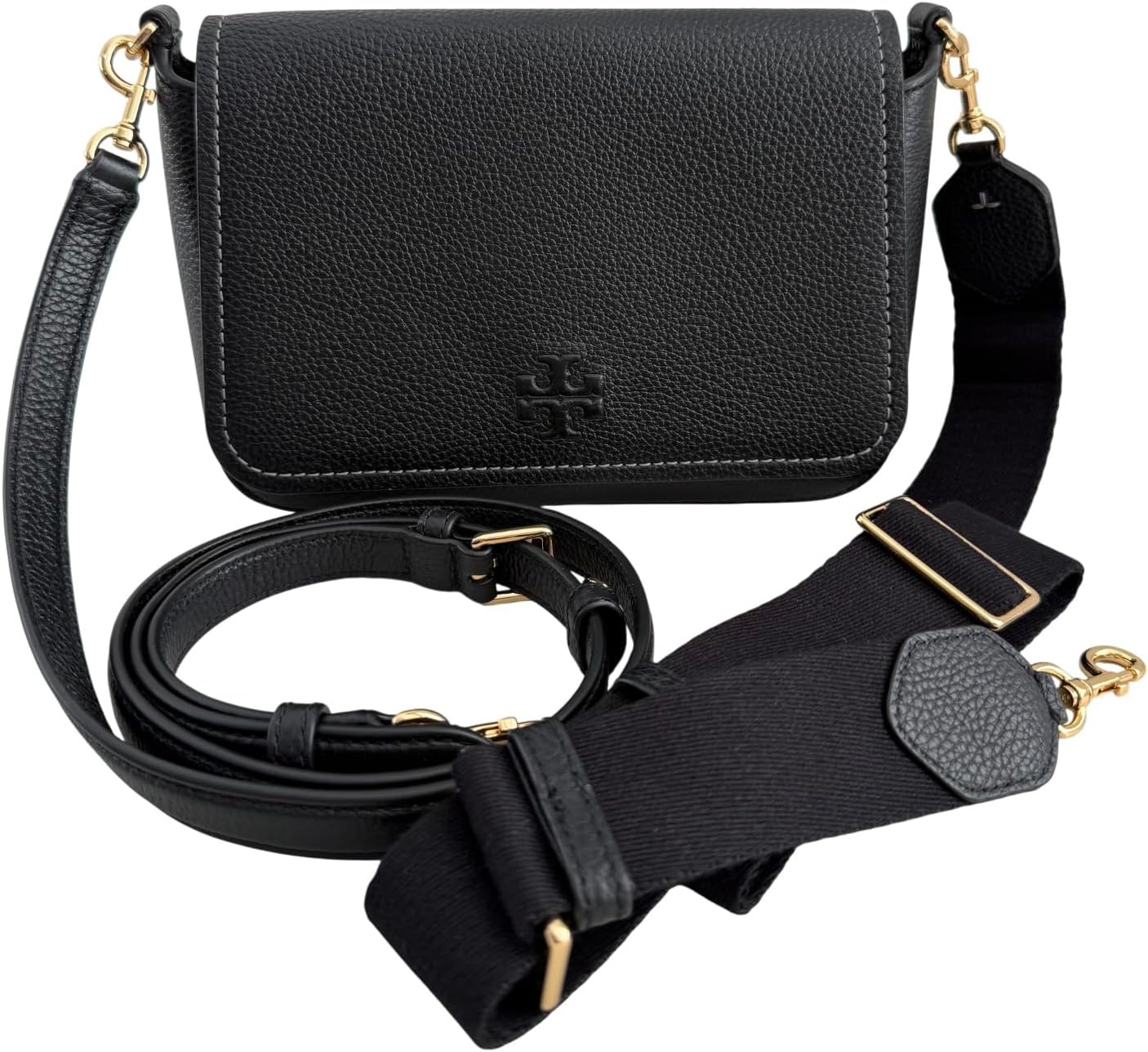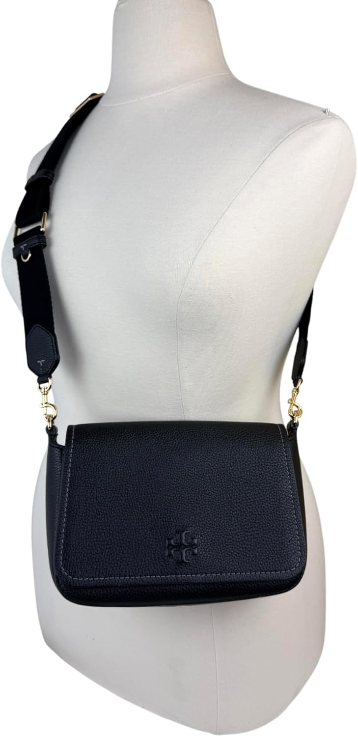 The Tory Burch Thea Flap Crossbody Bag combines timeless style with practical design. Crafted from high-quality leather in a classic black finish, it features elegant gold hardware and a convenient flap closure. With dimensions of 9 x 3 x 7 inches and weighing 1.43 pounds, this women’s crossbody handbag is perfect for everyday use. It ranks #4,913 in Women’s Crossbody Handbags and has a 4.1-star rating from 8 customer reviews. First available on August 17, 2023, and manufactured by Tory Burch with model number 144688 and ASIN B0CFYMHRB6. Includes product warranty details.