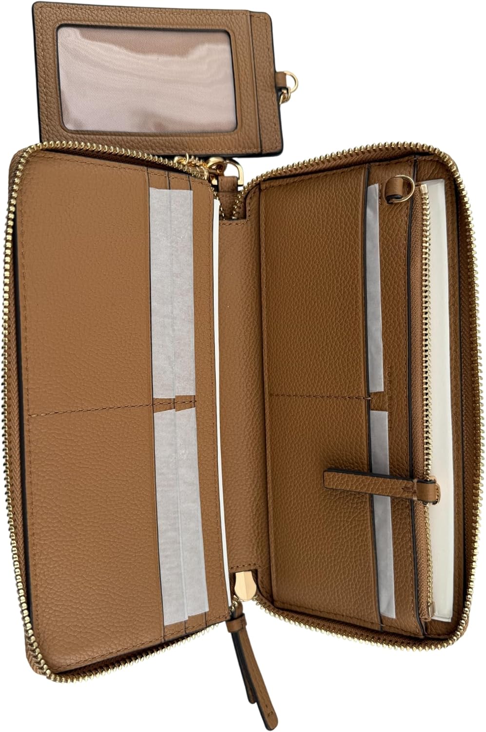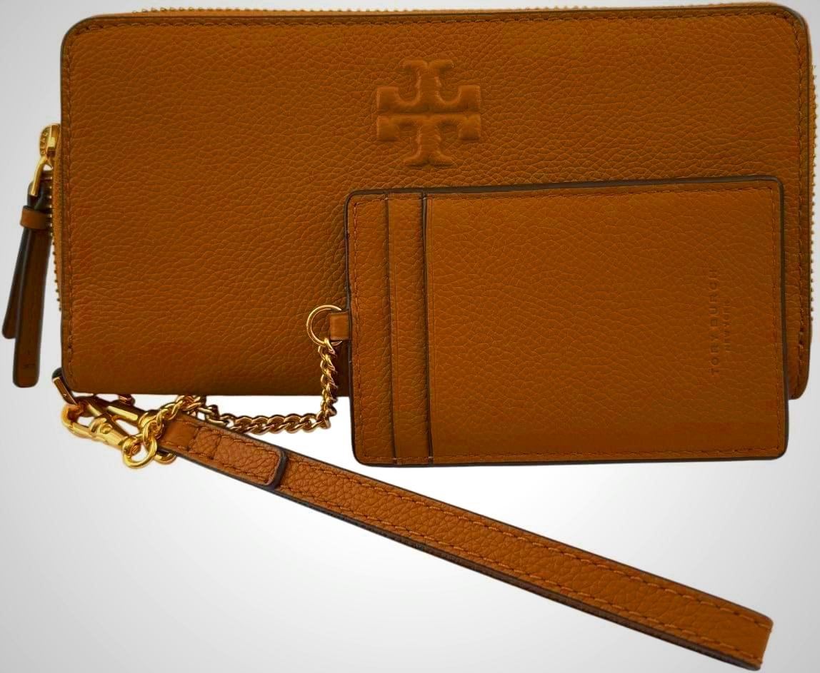 The Tory Burch Women’s Pebble Leather Thea Zip Continental Wallet combines style and functionality. Crafted from premium pebble leather, it features a zip-around design, multiple card slots, and a removable ID case for secure organization. Ideal for everyday use, this wallet offers durability and a sophisticated look in the elegant Tiramisu color.