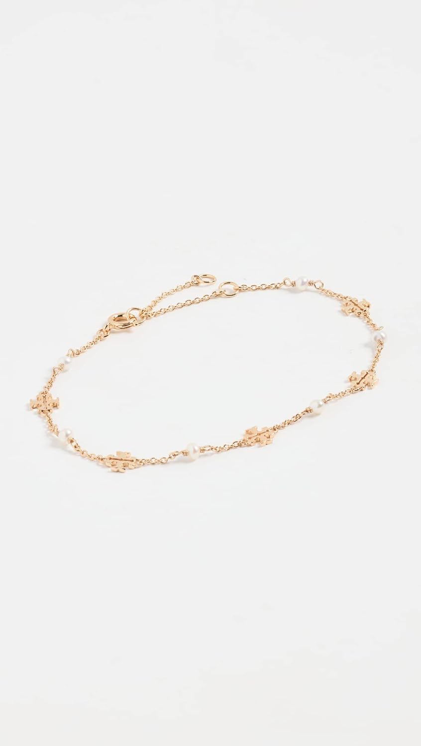 Discover the Tory Burch Women’s Delicate Moondance Pearl Bracelet, a sophisticated accessory featuring a delicate design with pearls. This bracelet has package dimensions of 5.26 x 3.75 x 1.25 inches and weighs 1 ounce. It is designed for women and has a model number 136788-137. First available on May 26, 2022, and manufactured by Tory Burch, it has an ASIN of B0B2F3WM38. It ranks #533,971 in Clothing, Shoes & Jewelry and #2,246 in Women’s Link Bracelets, with a customer rating of 4.1 out of 5 stars from 8 reviews.