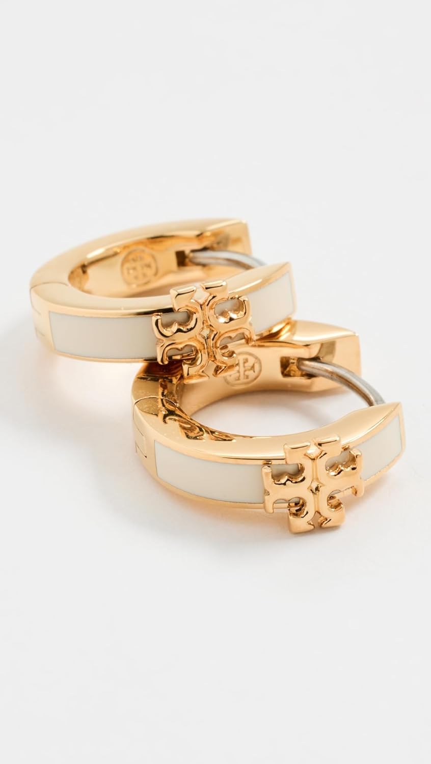 Tory Burch Women’s Kira Enamel Huggie Earrings, Tory Gold/New Ivory, One Size