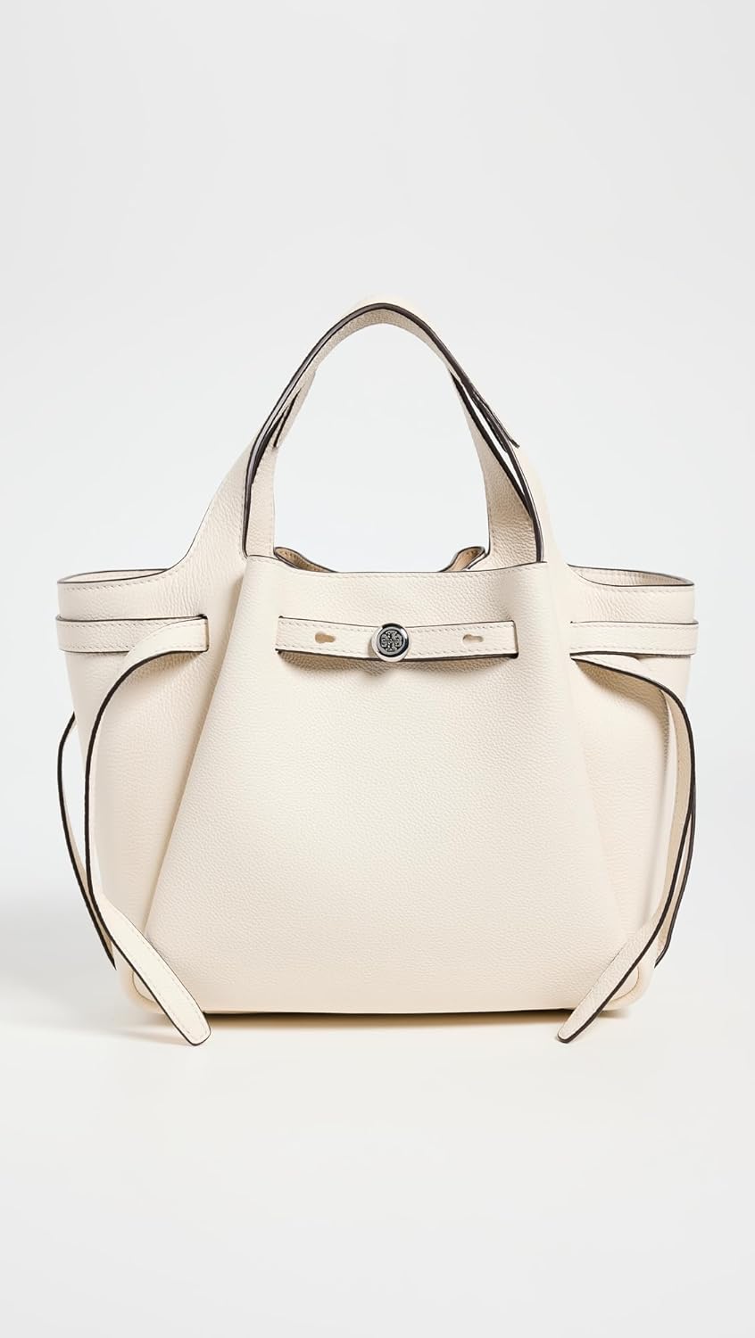 Discover the Tory Burch Women’s Romy Pebbled Satchel, a stylish and practical handbag available in Black and Light Cream. Product dimensions: 13.78 x 4.72 x 8.66 inches; weight: 2.31 pounds. Model number: 164866-921. Department: women’s. First available: December 20, 2024. Manufacturer: Tory Burch. ASIN: B0DMTXGPGN. Product warranty information available. Best Sellers Rank: #828,234 in Clothing, Shoes & Jewelry, #1,355 in Women’s Satchel Handbags. Customer reviews: 4.7 out of 5 stars from 6 ratings.